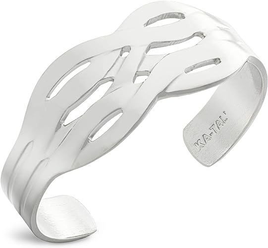 • Adjustable Cuff is meant to have a close fit so it does not turn and the design remains visible on top; sized for an average size wrist and gently adjustable; rounded length is about 6 3/8 inch and cuff opening is approximately 1 1/8 inch; weight is approximately 32g.
